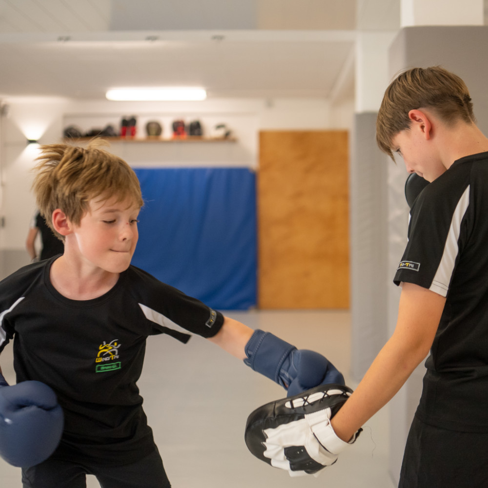 Im Wing Tai Kinder Kung Fu trainieren die Kinder über alle Distanzen. Grundlegend sind Arm- und Beinbewegungen, Würfe, Fallschule, Raufen und Ringen, sowie das trainieren und bestehen erster Kampfsituationen. Es wird mit und ohne Partner geübt. Durch das Training mit Schlagpolstern erlangen die Kinder mehr Selbstwirksamkeit und bauen Stress ab.