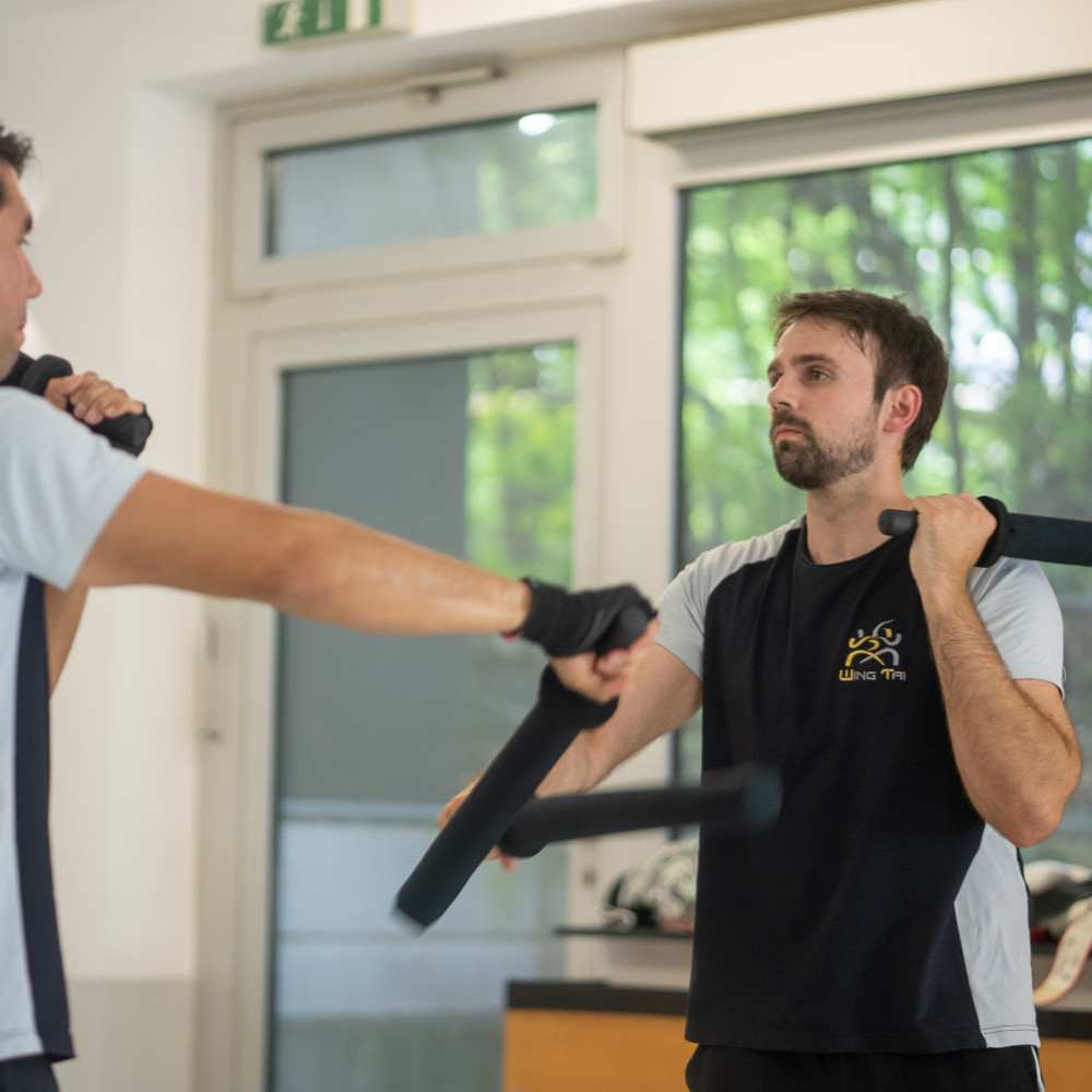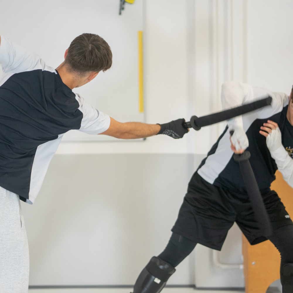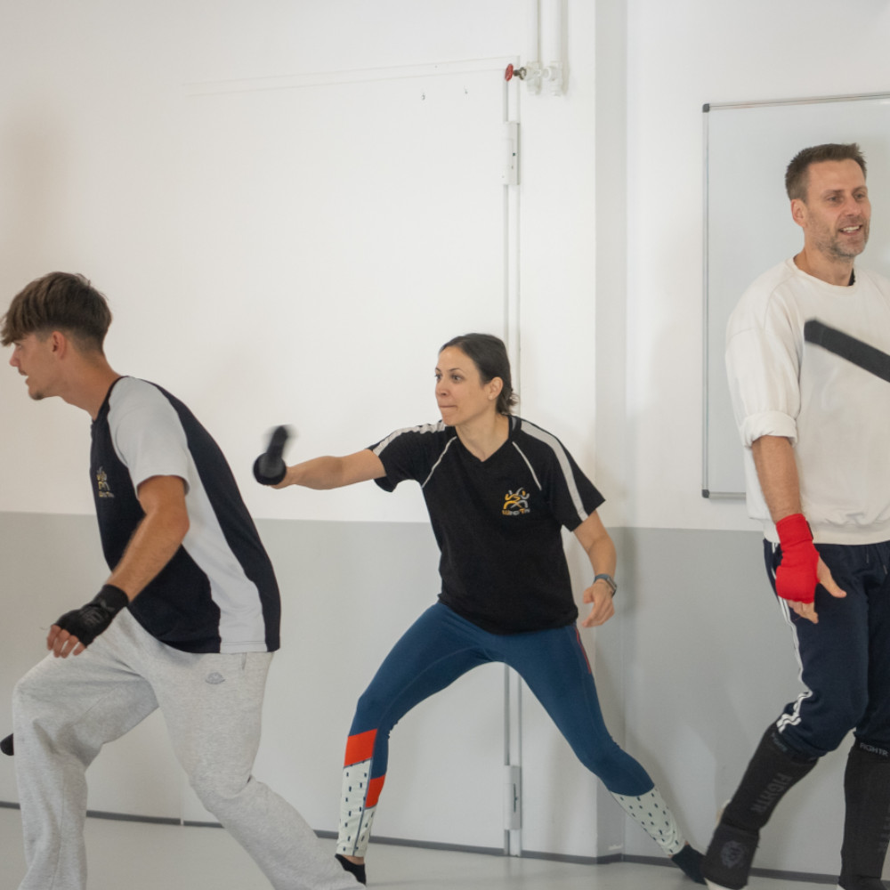 In der WITA Sportschule lernst du modernes und klassisches Stockfechten mit einer Vielzahl von Stöcken, Schilden, Tonfas, Messern und Schwertern in allen Größen und Längen. Du wirst schrittweise an den Umgang mit diesen Waffen herangeführt und trainierst dabei deine Koordination und Reaktionsfähigkeit. Intensives Sparring gehört ebenfalls zum Training, wobei stets auf Sicherheit und den Einsatz von Schutzausrüstung geachtet wird. So lernst du, auch unter Druck die richtigen Entscheidungen zu treffen und deine Fähigkeiten kontinuierlich zu verbessern.