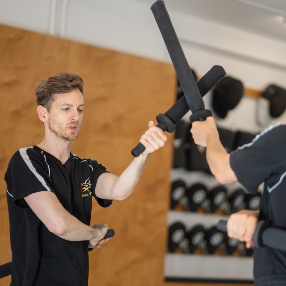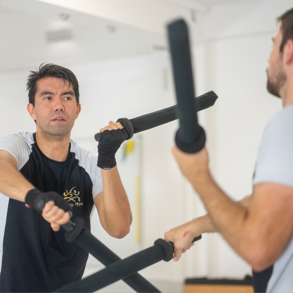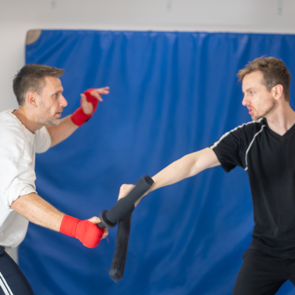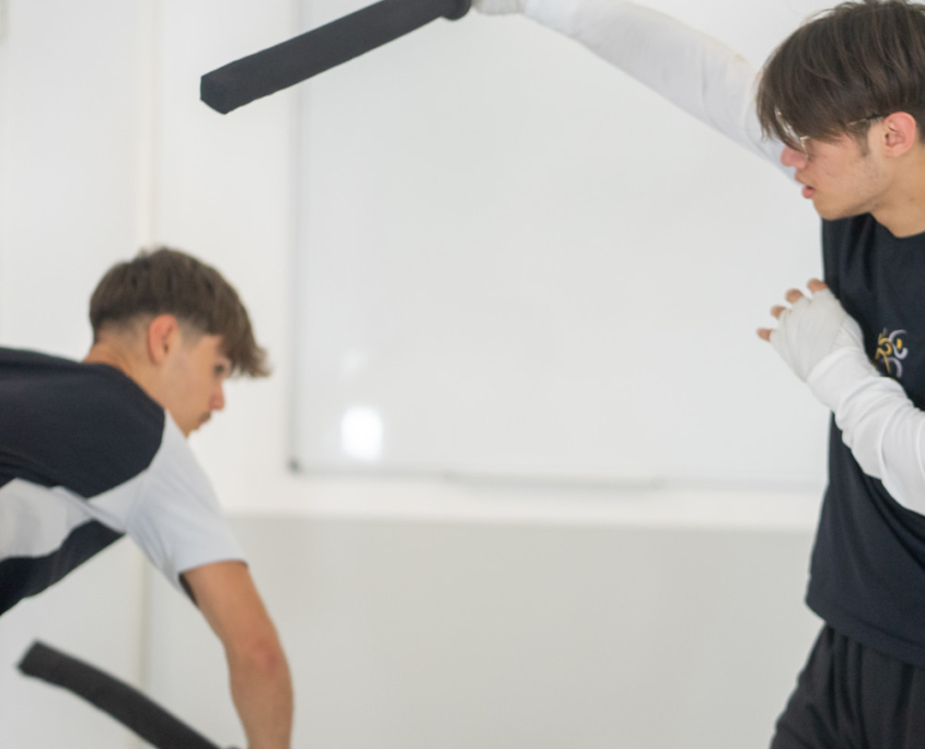 In der WITA Sportschule lernst du modernes und klassisches Stockfechten mit einer Vielzahl von Stöcken, Schilden, Tonfas, Messern und Schwertern in allen Größen und Längen. Du wirst schrittweise an den Umgang mit diesen Waffen herangeführt und trainierst dabei deine Koordination und Reaktionsfähigkeit. Intensives Sparring gehört ebenfalls zum Training, wobei stets auf Sicherheit und den Einsatz von Schutzausrüstung geachtet wird. So lernst du, auch unter Druck die richtigen Entscheidungen zu treffen und deine Fähigkeiten kontinuierlich zu verbessern.