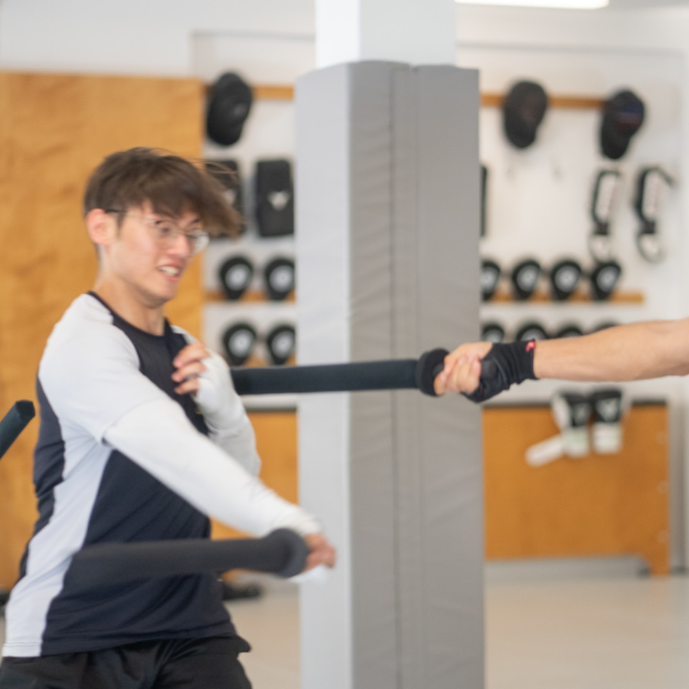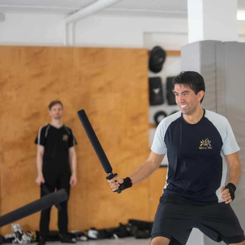 Waffenkünste sind seit jeher Teil unserer Kultur und tragen heute noch zur persönlichen Entwicklung bei. In unserem Training arbeiten wir mit verschiedenen stumpfen, gut gesicherten Waffen – von kurzen bis langen, leichten bis schweren. Durch Schutzausrüstung und strukturiertes Training erlernen wir Techniken sicher und verbessern Koordination, Reaktionsfähigkeit und Körperbeherrschung – mit praktischem Nutzen für den Alltag.