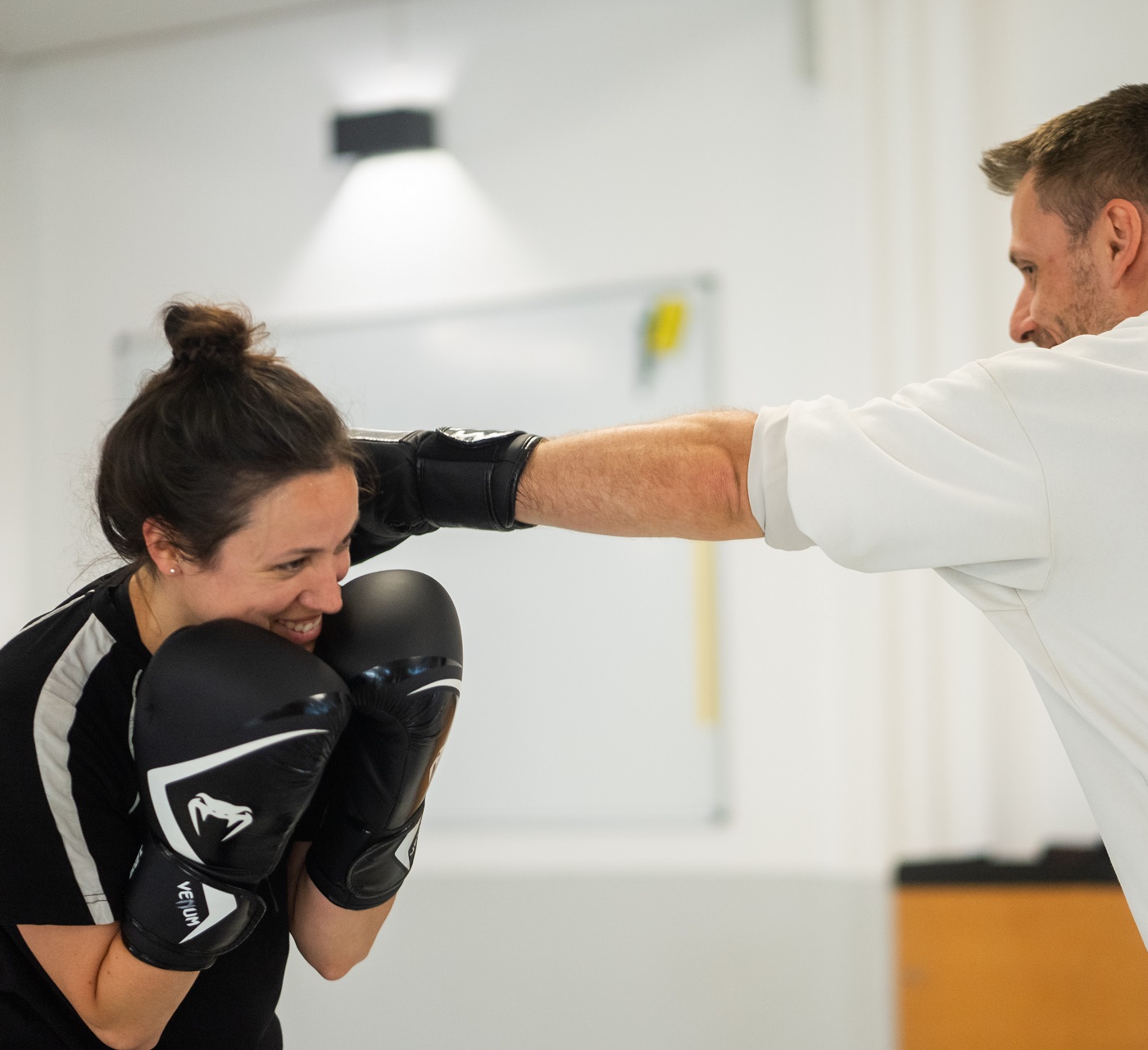 Selbstverteidigung stärkt deinen Kampfgeist und bereitet dich darauf vor, in gefährlichen Situationen sicher zu reagieren. Bei uns lernst du, auf Instinkt und Reflexe zu vertrauen und dich effektiv zu verteidigen – unabhängig von deinem Level. Dabei ist uns eine gesunde Sparring-Etikette wichtig: Du kämpfst fair, respektvoll und achtest auf die Sicherheit deines Partners, um eine positive Lernumgebung zu schaffen.